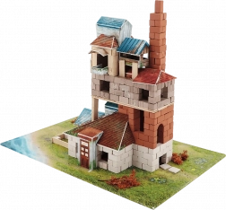 Build with genuine bricks fired at 1000 °C and complement the structure with authentic wooden elements. The result looks solid and believable.