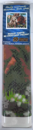 Discover the magic of relaxation with the creative diamond painting kit Horse Harmony in size 30 × 40 cm. Using a simple technique of placing brilliant, lightning-shine drills, you can create an impressive mosaic image without any artistic skills. The package includes everything you need – a canvas with a pre-printed design, pen, tray, wax, and a set of drills. Great relaxation for kids and adults and a wonderful gift for any occasion.
