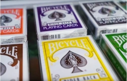 - 9 original BICYCLE decks in the following colors: brown, yellow, gray, orange, green, fuchsia, red, black, turquoise.