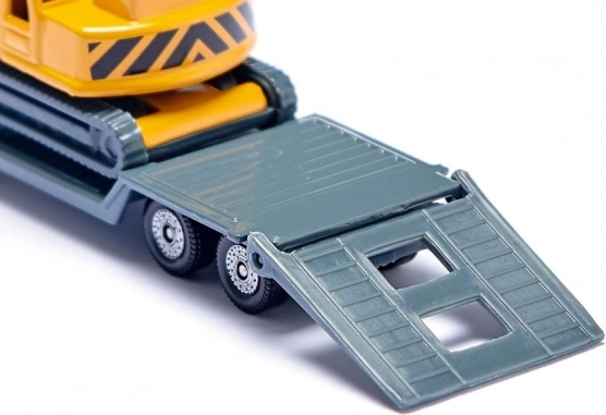 Metal and plastic parts, rubber tires, and rear protection ensure smooth transport of the machine. The excavator included in the set is a unique model reflecting a real-life appearance with moving parts. It is an attractive model for construction vehicle enthusiasts of all ages.