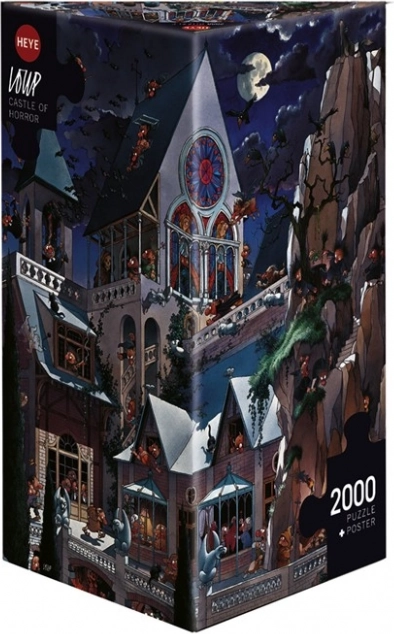 Enjoy hours of fun with a stylish puzzle by the cartoonist Loup. This large puzzle with a haunted castle motif offers 2000 pieces, comes in an unconventional triangular box, and includes a poster as a reference. The assembled image measures approximately 68 × 96 cm.