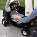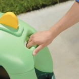 For extra fun and comfort, it offers a steering wheel with horn, clicking ignition, opening fuel cap, and cup holders behind the seat. The front wheels rotate 360°, making turning easier both at home and outside. Parents can guide the car easily thanks to the integrated roof handle. Rotomoulding manufacturing ensures long life and durability.