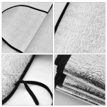 The sunshade easily attaches to the windshield and can be folded into a compact shape after use.