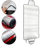 Made from durable and quality materials (PE foam with aluminum foil), this sunshade is designed for long-lasting use and effective protection. With dimensions of 150 x 70 cm, it fits most vehicles. Installation is quick and easy, and after use, it can be easily folded and stored.