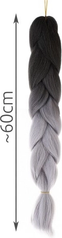 The high-temperature resistant fiber is resistant to UV radiation and high temperatures, allowing you to restyle it with a hairdryer, flat iron, or curling iron just like natural hair. Product specifications include black-grey color, synthetic material, and a length of approximately 60 cm.