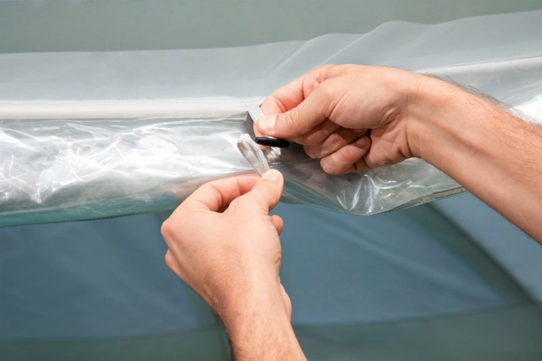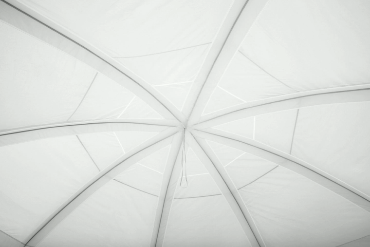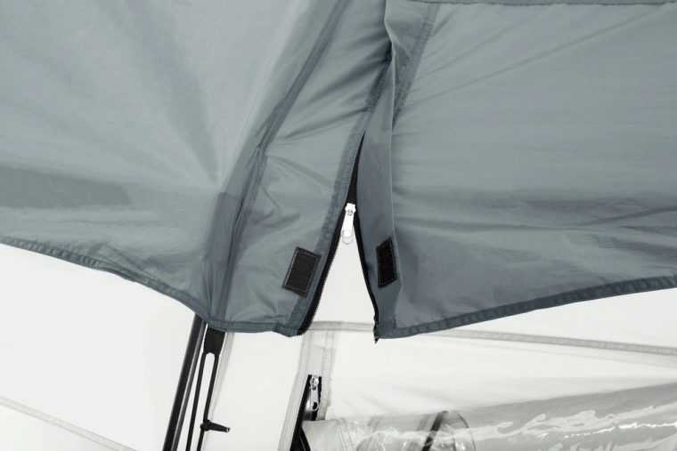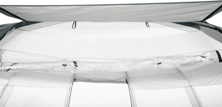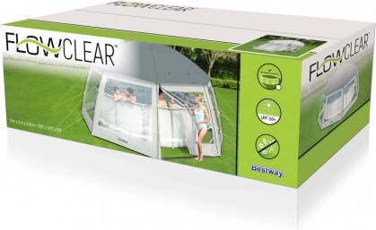 The protective tent‑style dome with a double‑layer design helps keep the water and the pool area cleaner, reduces wind‑blown debris, and provides shade. Transparent PVC windows let in light and offer a view, while mosquito nets ensure air circulation without unwanted insects. A stable frame with tensioning lines keeps the gazebo firmly in place.