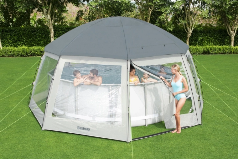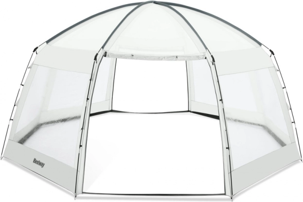 Create your own garden oasis: this spacious pool gazebo from Bestway protects from sun, rain, and insects, offers privacy, and its 295 cm height allows comfortable access even with a ladder. It’s compatible with hot tubs and above‑ground pools up to about 4.88 m in diameter and can be assembled in 15 minutes.