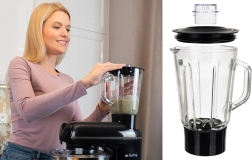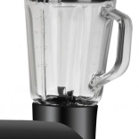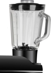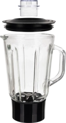 Durable glass jar with measuring marks and a lid with a fill opening allows safe dosing of ingredients during blending. Ideal for smoothies, dressings, and iced cocktails.