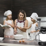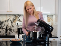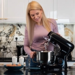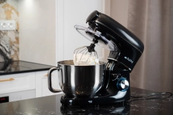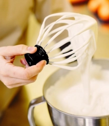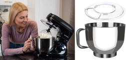 Perfectly mixes the entire bowl thanks to the planetary trajectory of the attachments. The stainless steel bowl with a practical handle and a splash guard keeps things tidy even at high speeds.
