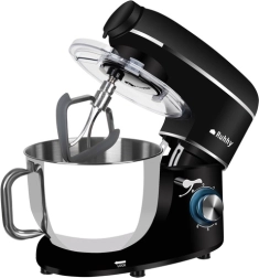 Discover a practical helper for every kitchen: the RUHHY 3-in-1 kitchen machine combines a planetary mixing system with metal gearing, a glass blender, and a meat grinder with 3 discs. The large 6.2 L stainless steel bowl with handle, transparent splash guard, and 6 speeds with PULSE ensure clean and fast work for whipping, mixing, and kneading.