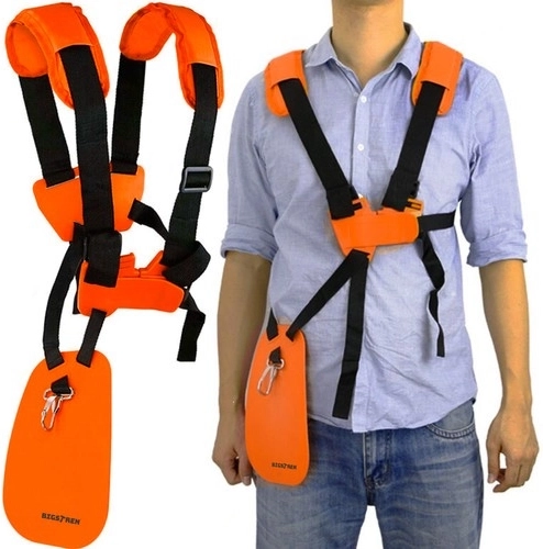 The adjustable strap system allows precise customization, improving the stability of the attached trimmer and overall working comfort.