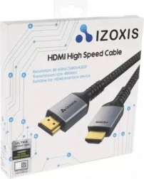 Powerful HDMI 2.1 cable from IZOXIS for transmitting video and audio simultaneously at 8K at 60 Hz. Durable braided nylon design, gold-plated connectors, and 48 Gbps bandwidth ensure a stable, clean signal for gaming, movies, and work. The 2-meter length offers flexible setup with no driver installation required.