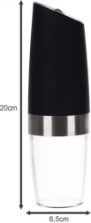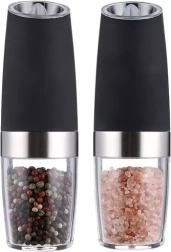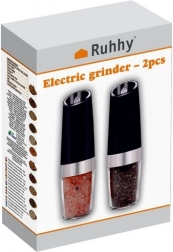Enjoy the intense aroma and taste of your favorite spices with the Ruhhy Electric Gravity Mill. This mill is practical, easy to use, and its modern black design fits any kitchen. The set contains two mills, activated by a simple 180-degree turn.