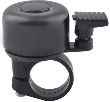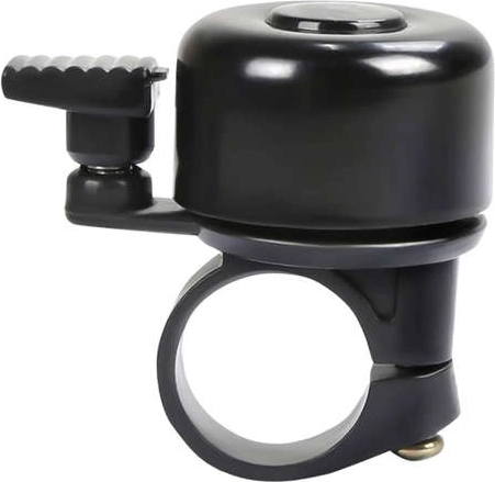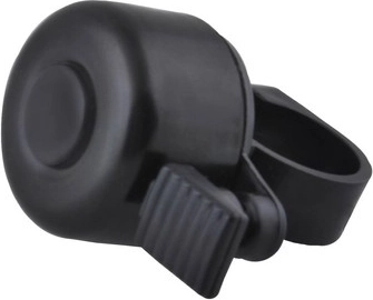 A compact bicycle bell in black for safe riding in the city and beyond. It offers a loud, clear sound, easy thumb operation, and universal handlebar mounting. Durable construction from aluminum alloy and plastic ensures long service life.