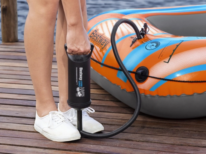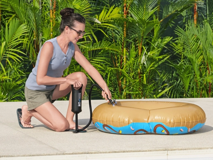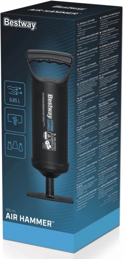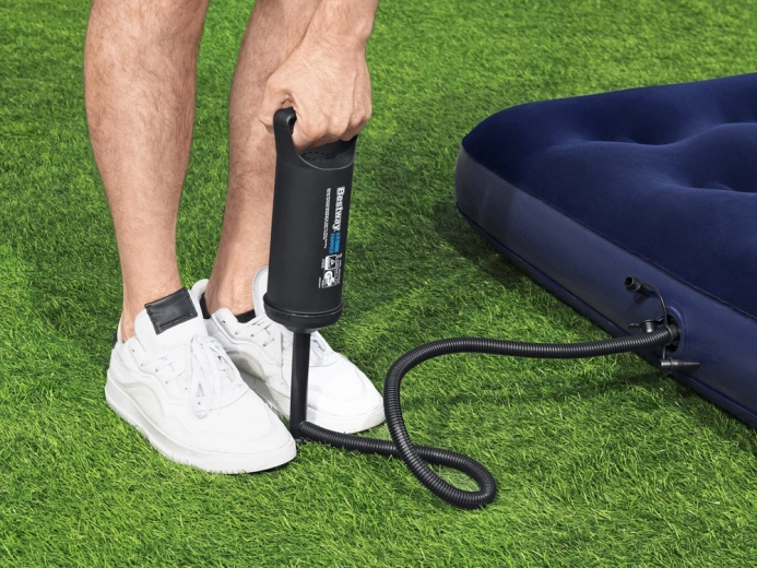 The Bestway manual piston pump is a reliable helper for inflation at home, in the garden, or by the water. Thanks to its design for maximum airflow, it pumps on both the up and down stroke, helping you reach the desired pressure faster and with less effort. The ergonomic handle and wide footrest provide stability during use.