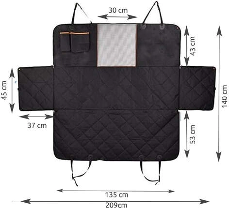 - Easy installation and safety for your pet thanks to openings for seat belts. The cover is easily spread over the back seats and secured with straps.