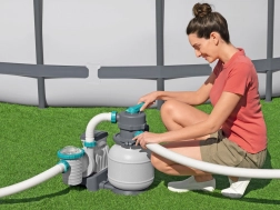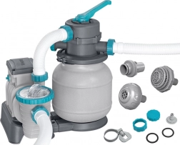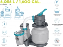Enjoy clean and crystal-clear water in your pool with the Bestway pool sand pump. This pump offers performance of 6056 l/hour and is ideal for pools with a capacity between 1,100 to 42,300 liters, making it a great helper for maintaining water cleanliness over a long period.