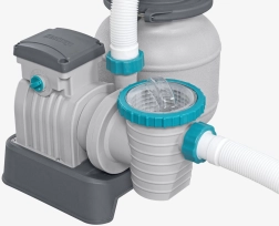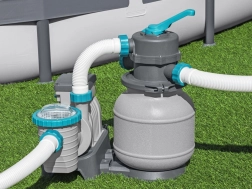 The pump with capacity of 6056 l/hour helps quickly remove impurities from your pool. A filtration medium is necessary - either quartz sand (0.45-0.85 mm) or efficient filtering balls POLYSPHERE.