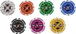 Color chips with a metal ring inside offer ideal weight and great handling for shuffling and betting—just like in a casino.