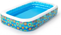 The BESTWAY family pool with an attractive floral print turns your garden into a summer oasis. It inflates easily, fills quickly, and is ready for play and relaxation in no time. The robust 0.32 mm PVC construction withstands summer fun while retaining comfortable feel.