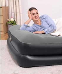 Enjoy a restful sleep thanks to the elevated height of 46 cm, which makes getting up easier, and the sturdy internal Tritech™ construction. The built-in 220–240 V electric pump quickly inflates and deflates the mattress, and the safety valve speeds up air release. The velour surface is pleasant to the touch and resistant to wear.