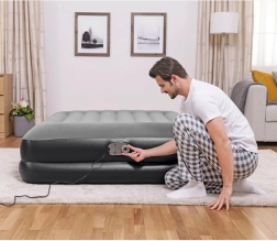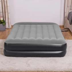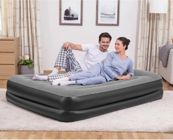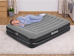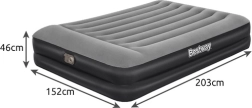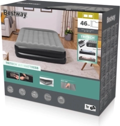 Comfortable queen-size inflatable mattress BESTWAY measuring 203 × 152 × 46 cm offers a built-in electric pump, an integrated pillow, and a velvety soft velour surface. The durable I-Beam/Tritech™ construction ensures stability, long service life, and sleeping comfort at home or on the go.