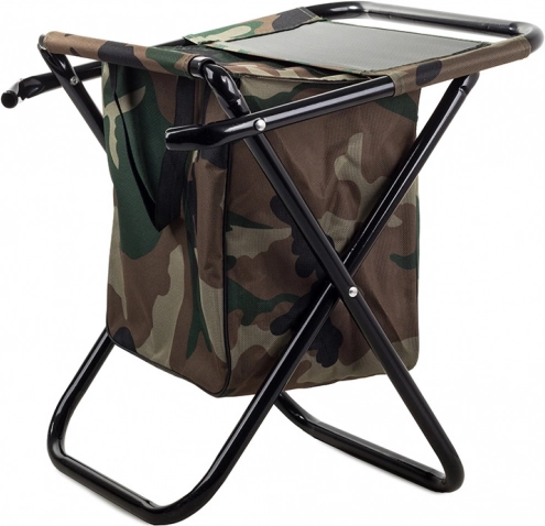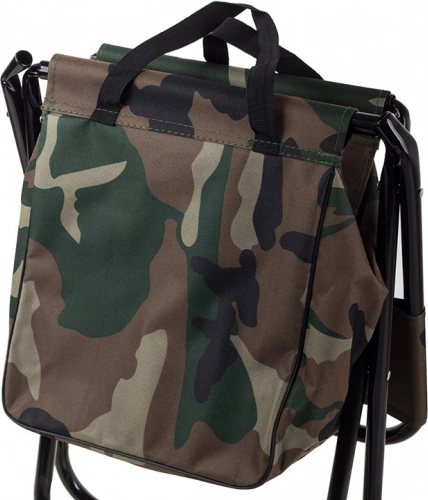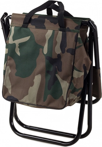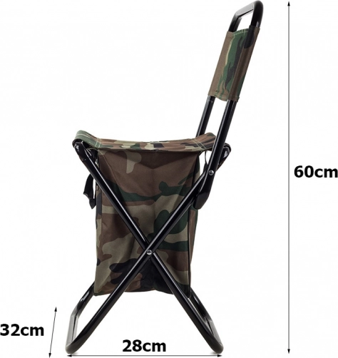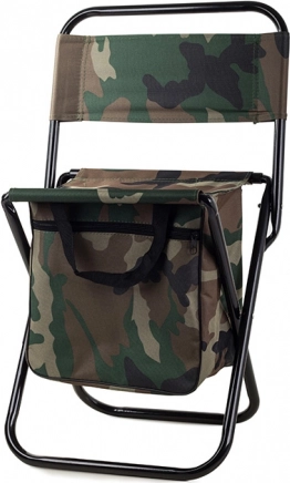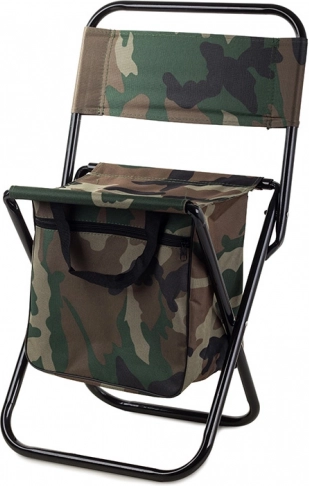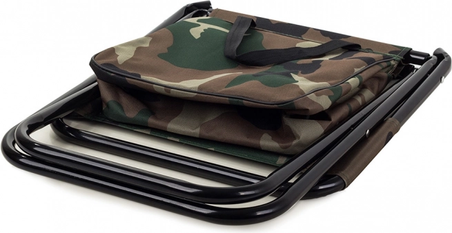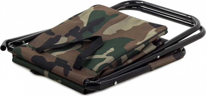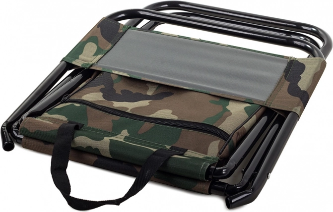 Lightweight and compact camping chair in MORO camouflage style with a practical backrest and an integrated bag under the seat. Offers comfortable seating for fishing, camping, and festivals, a stable steel frame, and easy carrying thanks to the handle and straps.
