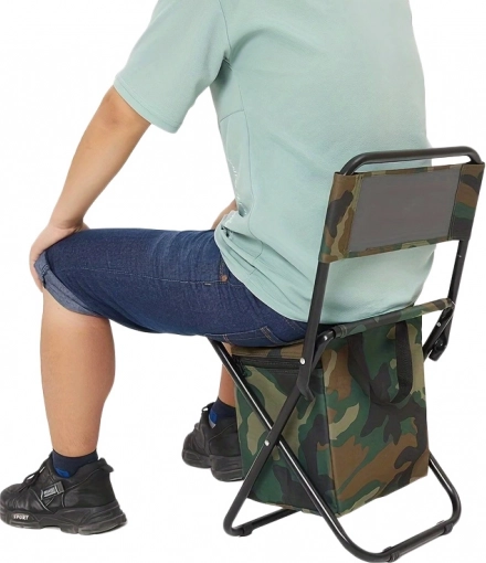 Enjoy comfort anywhere outdoors. This folding chair combines the comfort of a backrest with the practicality of a spacious zippered bag under the seat. Keep everything important within reach—from fishing gear to snacks and drinks.