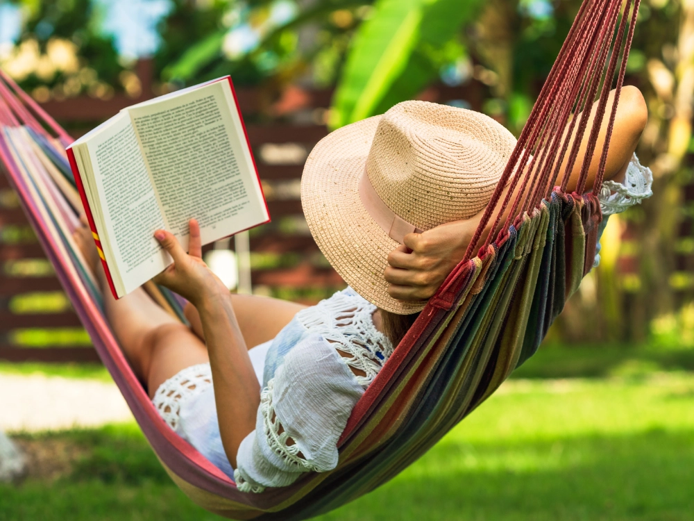 The package includes 2 fastening ropes for quick hanging between trees or on solid posts. The wide lying surface makes it easy to get in and out, whether you’re reading, resting, or gently swaying.