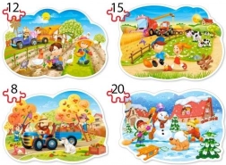 Discover a fun and educational puzzle set for little ones: 4 separate jigsaw puzzles with farm and countryside themes in difficulties of 8, 12, 15 and 20 pieces. Thanks to the vibrant colors, large pieces and thoughtful design, kids can easily complete each picture while developing motor skills, logical thinking and focus.