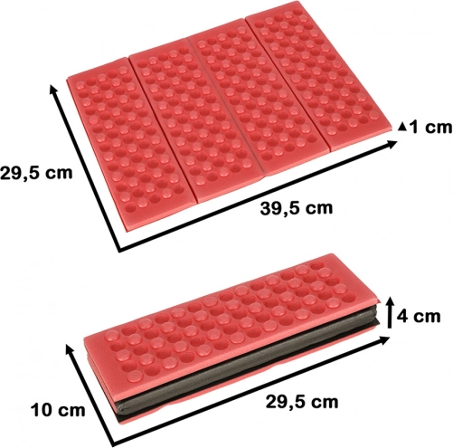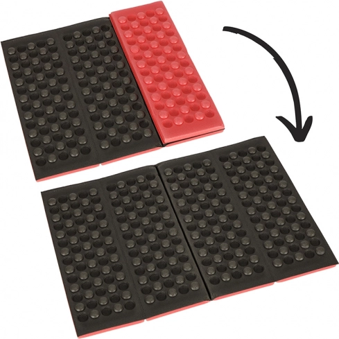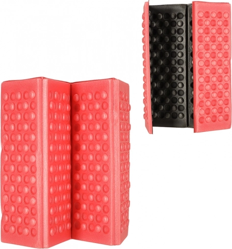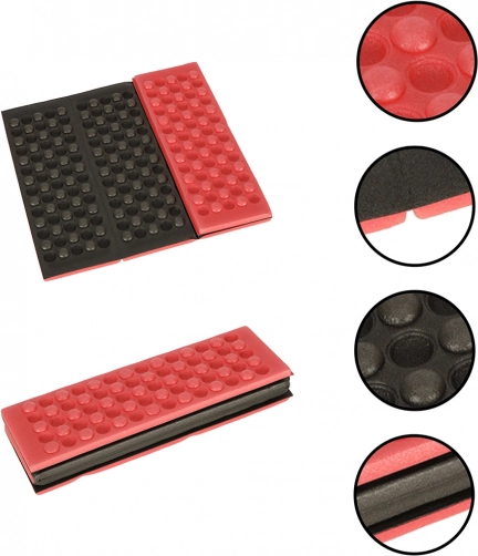 A practical folding seat pad made of durable foam enhances comfort on trips, in the mountains, and at picnics. It provides insulation from cold and moisture, is lightweight and compact to carry, and easy to clean.