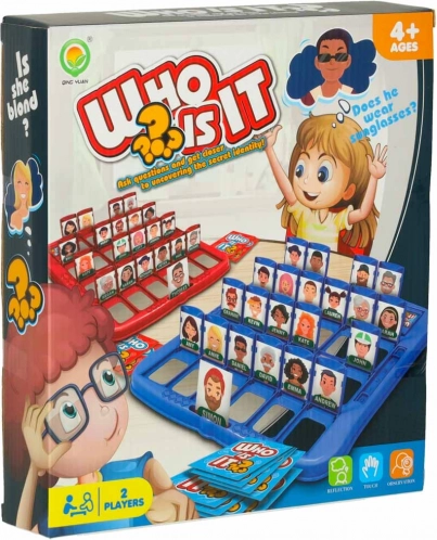 Pick a secret character and ask smart questions: “Does your character wear glasses?” or “Do they have blond hair?” After each yes/no answer, quickly flip down the windows that don’t match — and step by step get closer to the correct guess. A fun and thrilling game that teaches kids and adults to ask the right questions and to deduce.