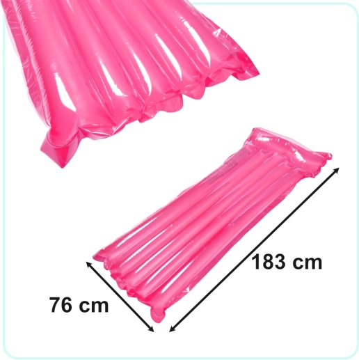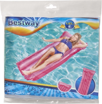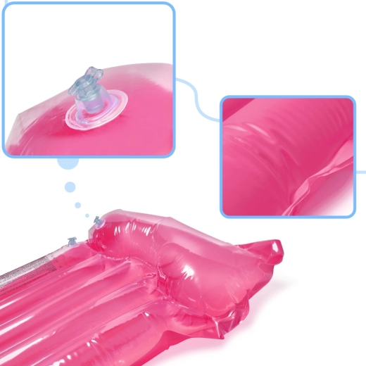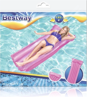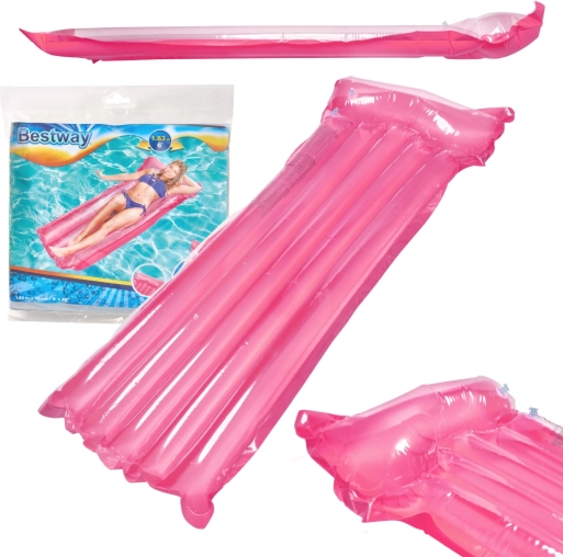 Enjoy summer to the fullest with the BESTWAY 44013 inflatable mattress in elegant pink. With a length of 183 cm, an integrated headrest, and a load capacity of up to 90 kg, it offers comfortable relaxation on the water at the pool or on the lake. The durable material and dual-chamber construction ensure stability, comfort, and long service life.