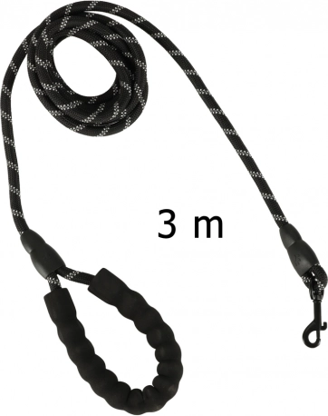 A durable 3 m rope leash for dogs combining a strong braided construction, reflective elements for safety, and an ergonomic padded handle for maximum comfort and control during walks and training.