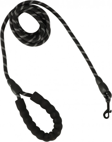 A reliable rope leash with a chrome swivel clip holds even medium to larger breeds. Thanks to its 3-meter length, your dog gets plenty of freedom while you maintain excellent control. Reflective stitching increases visibility at dusk and in the dark, making it a safe choice for everyday walks.