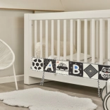 Master the world of shapes and colors with this magical textile book, captivating your little ones continuously. It offers up to 12 different contrasting patterns and can be attached to the crib as a protective bumper with ties. It is the perfect addition for children's safety and development.