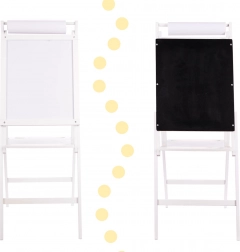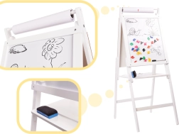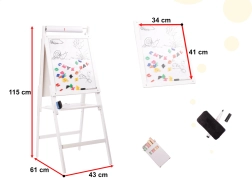 We offer you a great toy that combines fun with learning. The double-sided board helps develop skills in writing, counting, and learning letters. Thanks to its sturdy wooden construction, the board is stable and easy to use for every activity.