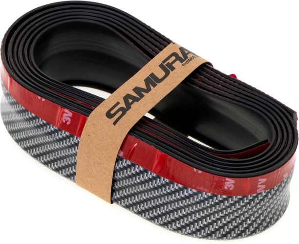 This universal strip/spoiler is made of high-quality, flexible rubber resistant to weather and minor mechanical impacts. The 3D/5D carbon effect accentuates your car’s lines and visually lowers the front end. Suitable for most bumpers—can be cut to length as needed.