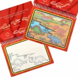 The pad includes 4 reusable pages in a spiral binding. After drying, the picture fades and your child can color again and again. Compact dimensions are ideal for travel backpacks.