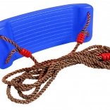 The wide plastic seat with fine ribbing is stable, comfortable, and pleasant to sit on even during longer swinging.