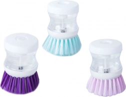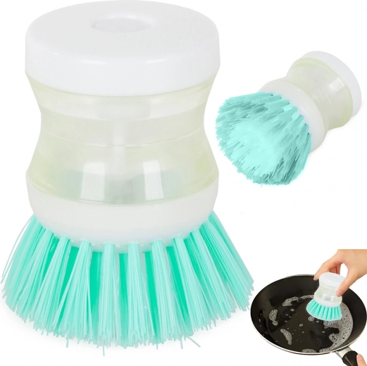 A practical dish brush with an integrated detergent dispenser for convenient and hygienic washing. Simply press the button to release the exact amount of detergent. Durable bristles tackle burnt-on residue and grease, and the compact size makes it comfortable to hold. Ideal for everyday kitchen cleaning – effective scrubbing, clean hands without contact with chemicals, and easy dispensing.