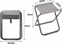 Enjoy comfort anywhere on the go. This folding camping and fishing stool combines a sturdy metal frame with low weight and portability. Thanks to its compact size, it fits easily into a backpack or bag and is ready for immediate use when fishing, camping, at the beach, or in the garden.