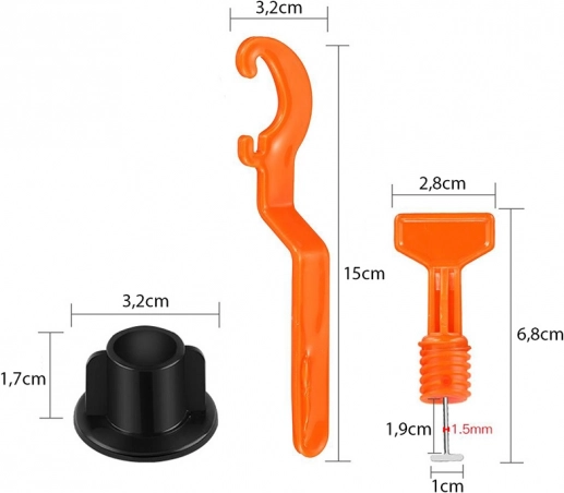 Make tile installation easier with this practical leveling system. Faster work, a perfectly flat surface without constant tapping and checking with a spirit level. Reusable clamps save time and money and ensure precise leveling of tiles with thicknesses of 3–16 mm.