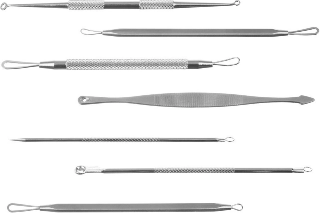 Usage tip: Before extraction, cleanse and warm the skin (e.g., with a warm compress). Place the appropriate loop over the comedone, press gently, and lift the impurity upward. After finishing, treat the skin with an antiseptic and disinfect the tools.