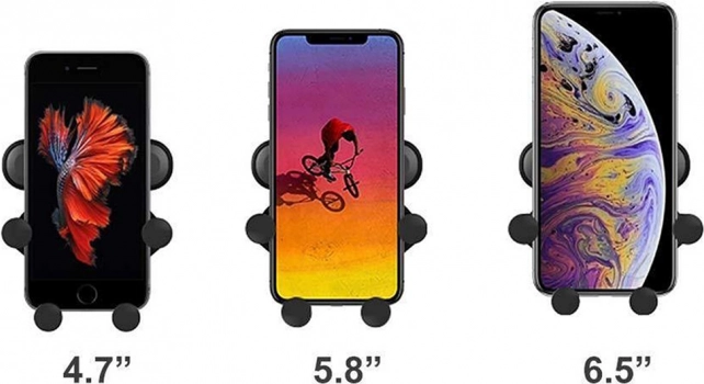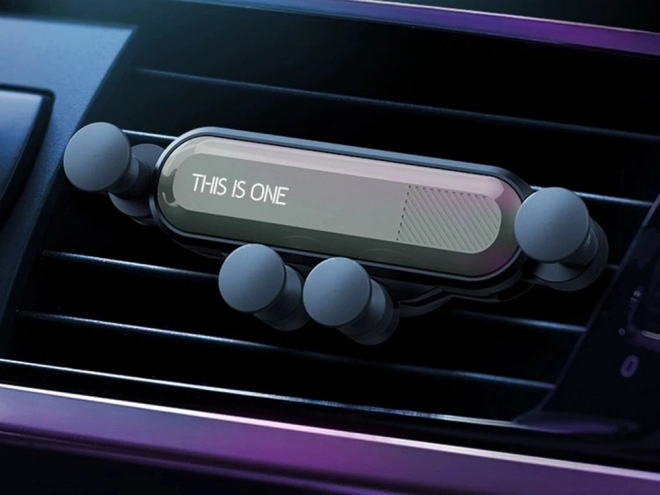 A compact gravity phone holder for car air vents ensures comfortable and secure use. Thanks to the gravity mechanism, the arms automatically adjust to the width of your phone, so you can operate it with one hand. The stable design supports the phone at four points, protects the device from scratches, and does not obstruct your view.