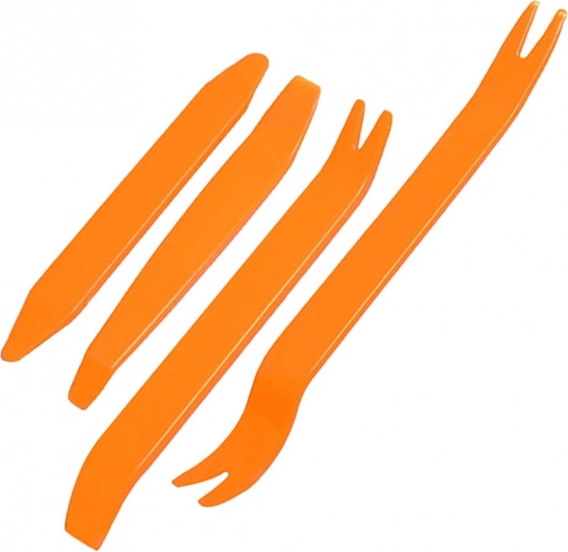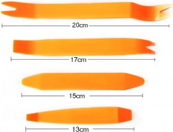 A practical set of 4 durable interior pry tools makes it easy to remove air vents, door handles, radios, and trim without damage. Thanks to different thicknesses and flexibility, you can easily choose the right tool. Blunt tips protect plastics from scratches, and the rigid plastic ensures long service life.