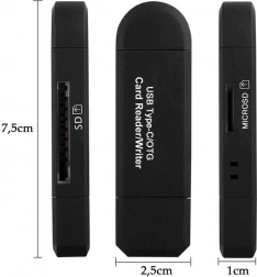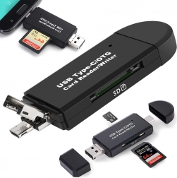 This universal USB card reader is compact and portable, making it an ideal assistant for all your devices. It allows easy data reading from SD and MicroSD cards, through USB, USB-C, and Micro USB connectors.
