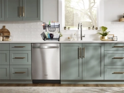 The two-tier dish rack is made of high-quality metal with a powder-coated finish to withstand moisture and heavy use. Thanks to its stable construction, draining water collects in a plastic tray and won’t damage your countertop.