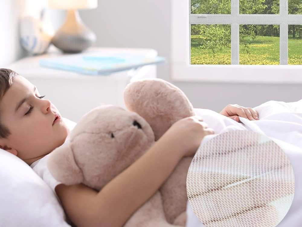 Dense yet airy mesh effectively stops mosquitoes and flies while letting light through and maintaining your view.