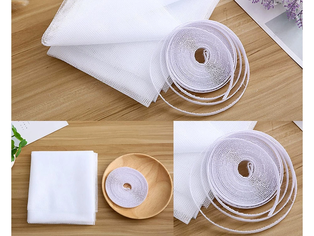 Installation takes just a few minutes: stick the hook-and-loop tape to the frame, apply the screen, trim any excess, and you’re done. The material is durable, machine-washable (30 °C), and suitable for repeated use. The 180 × 150 cm size can be trimmed to fit most windows and balcony doors.